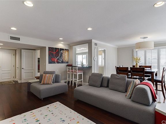 A new, elegant living experience awaits in this gorgeous and spacious 3 bed/ 2 bath condo inside of a gated community with 24hour guards. The Spanish-inspired exterior contrasts with the modern, graceful interior of 6336 Riviera Cir. The open floor plan exudes an expansive atmosphere. Rich dark laminate floors run through much of this refined living space. Recessed LED lighting and plantation shutters enhance the chic decor. The array of windows in the living and dining room allows for much natural light to brighten the whole area. A gas fireplace completes the upscale ambiance in the living room. This alluring condo is ideal for entertaining guests. The kitchen is a stylish work of art with cream wood cabinets that contrast with granite counters and new stainless steel appliances (oven & microwave). Step onto any of the two decks for a breathtaking view of Catalina Island. The master bedroom suite is simply stunning - plush carpet, plantation shutters, and grand walk-in closet. The upgraded master bathroom features a double vanity, soaking tub,and skylights . The other bedrooms also include plantation shutters, carpeted floors, and generous closet space. The bathrooms are all equipped with spa-style shower heads (oxygen vortex). This amazing condo is energy-efficient and smart - from LED lights to smart thermostat and lighting. Other amenities include an in-house laundry room with washer and dryer hook-ups and ample storage space in the garage.