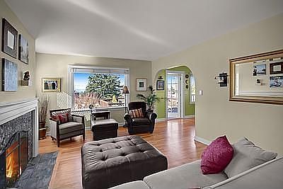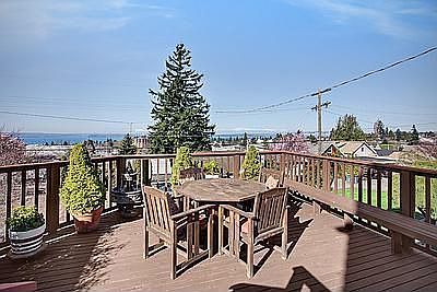 It\'s like a vacation home in the city and you won\'t want to leave! This home is like a haven for family and friends. Huge picture windows frame a stunning Puget Sound and islands view fully seen from the kitchen, the living room, the master bedroom, the office, the deck and a separate outdoor flagstone sitting area. Inside, the kitchen is perfect for creating great meals and memories: granite kitchen counters, a golden, natural wood island, a gas range and convection oven, a built in Sub Zero fridge, under counter and adjustable lighting. In the living room, a granite fireplace is a wonderful spot to curl up with a good book and that great Sound view. The master suite has a separate office (or reading area) with the Sound view spread out before you. Just outside the kitchen is a very large, newly painted deck that is equally perfect for the big family get together. The newly landscaped backyard springs to life with dozens of different plants and flowers, and you will adore the relaxing sight and sounds from the stone lined pond featuring an oversized koi fountain. Each of the three floors has its own bedroom and bathroom and, downstairs, a family room with a granite wet bar is another great place for entertaining. There\'s a ton of space in the laundry and storage room, and convenient parking in a two vehicle detached carport.