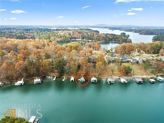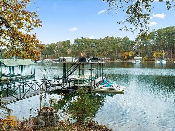 PRICE ADJUSTMENT!!! AMAZING investment opportunity to purchase this charming 3BR/2BA home on the South end of Lake Lanier with DEEP WATER ACCESS, PARTY DOCK, on one of the most social streets on the lake! This golf cart community is near Lanier Islands Resort with the exciting Margaritaville, near Holiday Marina, great restaurants, shopping & much more! Upon entry, you'll walk into the Family Rm with cozy fireplace, Owner's Ste & 2nd BR. The BR's on main level have nice views to the lake! Take steps down to lower level with large Kitchen & DR with large floor to ceiling windows with MORE incredible views to the lake! 1 additional BR, full BA, Laundry Rm & pantry complete the downstairs. From the Kitchen, step out onto an oversized deck, great for entertaining & enjoy the incredible views! Exterior shed with electricity has room for plenty of storage! Gentle slope walking trail to dock & enjoy lake life year round!!! Sale of property is As-Is.