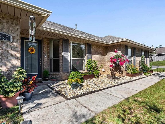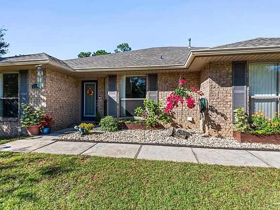 Discover this beautifully maintained 4-bedroom, 2-bath home in the desirable Robin’s Ridge Subdivision. Conveniently located near Davis Hwy and I-10 yet tucked away from the hustle and bustle, this move-in-ready home offers the perfect blend of comfort and convenience. Inside, you’ll find gorgeous Corotek vinyl flooring in the main living areas and porcelain tile in the baths. The spacious primary suite features an oversized porcelain shower with a frameless glass door, creating a spa-like retreat. The home’s neutral décor and meticulous cleanliness showcase true pride of ownership. Recent updates include a new roof with transferrable warranty (2025), A/C replaced in 2022, new garage door springs with warranty (2025), new patio space (2023), new toilets (2023), new garbage disposal (2024), fresh paint (2025), and a transferrable, prepaid HVAC/AC service appointment scheduled for Spring 2026. This home also includes a transferrable pest control bond through Knox Pest Control. Outside, enjoy a beautifully landscaped yard with a separate irrigation system, plus a covered patio to unwind on after a long day. A newer tool shed offers convenient storage for all your outdoor equipment. This two-owner home has been lovingly cared for and thoughtfully updated, offering a clean, comfortable, and truly move-in-ready space you’ll be proud to call your own. Don’t miss your chance to see this beautiful home!