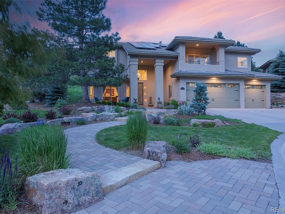 PRICED TO SELL!! Tucked away on a private cul-de-sac and backing to Dakota Ridge Open Space, this exceptional custom home sits on over 1/3 of an acre and offers a rare combination of privacy, luxury, and thoughtful updates. A grand two-story foyer with gleaming hardwood floors and a dramatic staircase welcomes you in. Just off the entry, a main-level study provides a quiet retreat or ideal work-from-home space with access to a covered patio.Upstairs, vaulted ceilings and abundant natural light enhance the open-concept layout. The great room with a cozy gas fireplace connects seamlessly to the formal dining area and gourmet kitchen, featuring newly refinished hardwood floors, granite countertops, tile backsplash, upgraded lighting, and newer appliances. Step outside to your private, fenced patio—perfect for dogs. The elegant primary suite on it's own floor, offers a spa-like five-piece bath with oversized glass block shower, soaking tub, walk-in closet, and a private balcony with views of the red rocks at Arrowhead Golf Course. Two secondary bedrooms share a full bath, and a central loft workspace and well-appointed laundry room with cabinetry and utility sink add everyday convenience.The finished basement features new high-end flooring throughout, a spacious rec/family room, a large guest suite with private access to a full bath, and a versatile flex space perfect for a home gym, media room, or future kitchenette—ideal for guests or multigenerational living. Additional highlights include leased solar panels, a new water heater, professional landscaping with smart irrigation, fresh interior paint, and an oversized three-car garage. All this, just minutes from Chatfield Reservoir, Waterton Canyon, and miles of trails—offering endless recreation and an abundance of wildlife, including deer, turkeys, and bobcats. Colorado living at its finest!