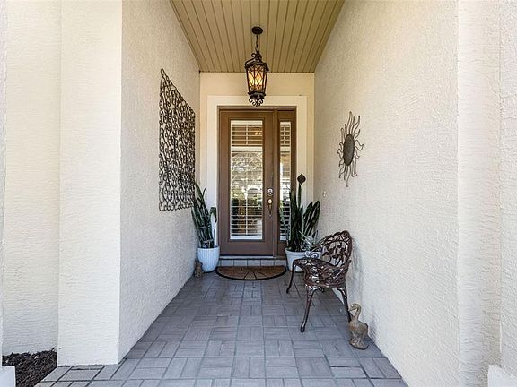 Under contract-accepting backup offers. Welcome to this beautifully appointed pool home with 2 bedrooms, 2 baths, plus a large den/office in the sought-after Tara Preserve community. Designed with an artist’s eye, every room offers thoughtful details and high-end finishes that set this property apart...custom shiplap, wainscoting, architectural molding, designer lighting and so much more. The heart of the home is the chef’s kitchen, featuring a Wolf gas range with designer hood and tile inlay, taupe quartz countertops, shaker-style cabinetry with textured glass fronts and open shelving, and both under-cabinet and uplighting for added ambiance. The sunny breakfast area overlooks the pool and is just perfect for casual meals. High ceilings, plantation shutters, and elegant tile floors flow throughout the open layout (no carpet). The great room shines with a custom trim accent wall, sconce lighting, and dramatic uplighting. A mirrored and trimmed feature wall in the dining room makes it ideal for entertaining. The spacious primary suite boasts lanai access, a sitting area, dual vanities, soaking tub, and walk-in shower with floor-to-ceiling designer tile. Outside, your backyard oasis awaits with a sparkling pool, covered lanai - expanded with permanent awnings. The custom etched and stained concrete floor and painted brick-accent walls along with the picturesque water view beyond the lanai and landscape lighting make this outdoor area quite spectacular. A very special and unique feature is the serene paver courtyard surrounded by lush hedges...your very own private retreat. All of this and you’re living in a golf community with OPTIONAL membership. Low HOA fees cover a large array of amenities: tennis courts, pickleball, heated community pool and spa, and clubhouse hosting many neighborhood activities. Internet and cable are included in the HOA fee! Please note taxes include CDD fee. Conveniently located near I-75, UTC Mall, Downtown Sarasota, and, of course, fabulous beaches (Siesta Key, Longboat Key, Anna Maria Island). This home blends style, comfort, and designer features to reflect Florida living at its best—move right in and enjoy!
