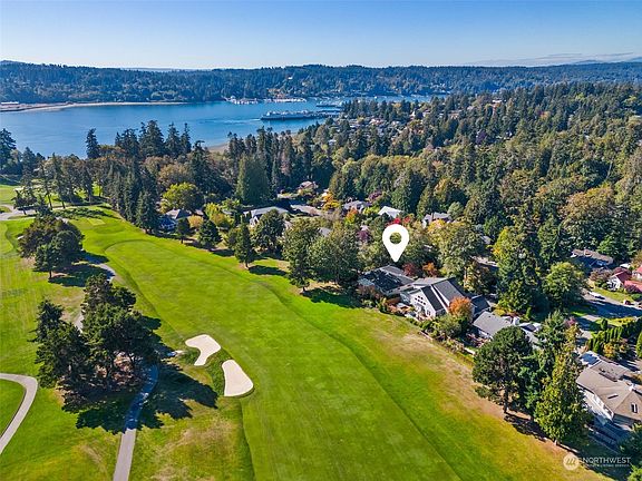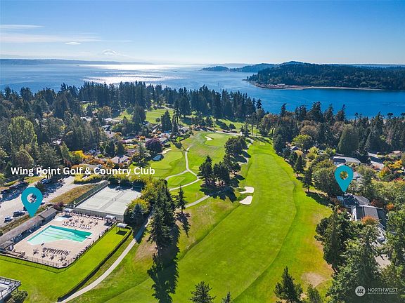 Come and enjoy one level living in this beautifully refinished view home on Wing Point Country Club Golf Course. The open floor plan and primary suite take full advantage of the view through the floor to ceiling windows. Step out on the patio to enjoy outdoor living while looking onto the manicured fairways & greens. Luxury refinishing throughout including a new roof and don't miss the finished space for the wine cellar and tasting room! Just over ½ mile to the best of Bainbridge, shopping, restaurants & the Seattle ferry