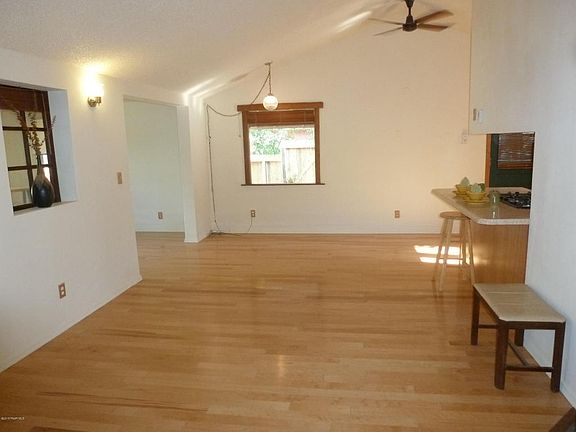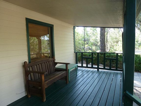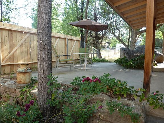 This is the fantasy! Idyllic flat, almost 1/2 acre lot in the pines of desirable neighborhood, 5 minutes to downtown Prescott Courthouse Square. City water and sewer. No HOA. Darling 2 bedroom, 1 bath home with possibility to expand. Enjoy being at the end of a long driveway that creates privacy to sit out and enjoy the front porch. Another delightful outdoor living area is the back patio off of the kitchen where you can entertain behind the privacy fence amid boulders and gardens. Large backyard is fenced.