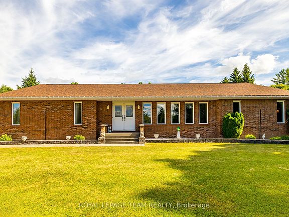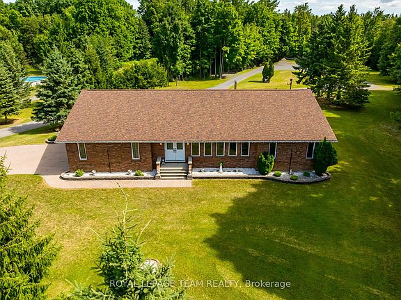Custom 2,541 Sq Ft All-Brick Bungalow above grade, on a nearly 2 acres property perfect for Contractors & Entertainers alike! Welcome to this spacious and solidly built home, positioned for endless sun offering great potential to create your dream home. Set on a private, tree-lined lot just under 2 acres, this property features extensive driveways throughout ideal for contractors, hobbyists, or anyone needing space for equipment, trailers, or toys. Inside, you'll find 3 generously sized bedrooms, each with walk-in closets, and a layout designed for comfortable family living and entertaining. A charming solarium sitting area greets you at the entrance, leading into a large formal living and dining room. The heart of the home is the solid oak kitchen with abundant cabinetry, an eat-in area, and an open connection to the cozy family room with a stone fireplace and direct access to the backyard. Perfect for those working from home, the side entrance leads directly into a private office space ideal for client visits with a full bathroom and nearby laundry for added convenience. The primary room features a 3pc ensuite, large closest and 2 entries from the solarium with double doors and another entry from the hallway that brings you to two spacious bedrooms and a 3pc full bathroom with soaker tub. The nearly 1,800 sq ft finished basement was once the talk of the neighbourhood and still holds incredible potential. Designed for entertaining, it features a spacious bar, pool table area, stage, and gas fireplace plus a workshop, utility room, and cold storage. This incredible layout must be seen to be fully appreciated. The driveway leading to the home is fully interlocked that leads you to the front door and wraps around the back of the home with a large patio for entertaining outside. Enjoy peaceful country-style living while staying just minutes from Carp, Stittsville, the highway, and all major amenities.