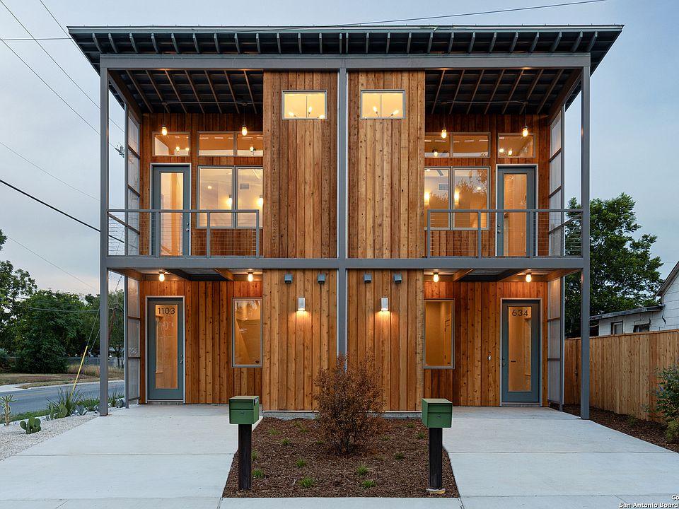 Brand new single family home in Denver Heights, only a few blocks from downtown and the upcoming Project Marvel. Contemporary zero-lot-line home by award-winning, local project team in Denver Heights. No condo association, no HOA, and no recurring fees- fee simple ownership opportunity. Contemporary, architect-driven design and construction. Commercial- grade carport below with private balcony above, sweeping neighborhood views, and small enclosed low-maintenance back yard. Solar and EV charger ready. Easy to ride a bicycle to many metro-area attractions: Hemisfair, Convention Center, Alamodome, and forthcoming Project Marvel mega-project + new Spurs arena. The other three identical homes in this project are also available at 1103 S. Cherry, 1107 S. Cherry, and 135 Louisiana St.