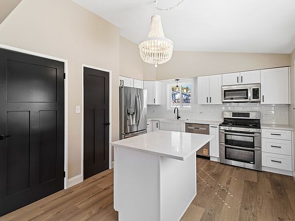 Farmhouse sinkSleek quartz countertopsSpacious open basementOpen floor planStunning kitchenBrand-new flooringClassic shaker cabinets
