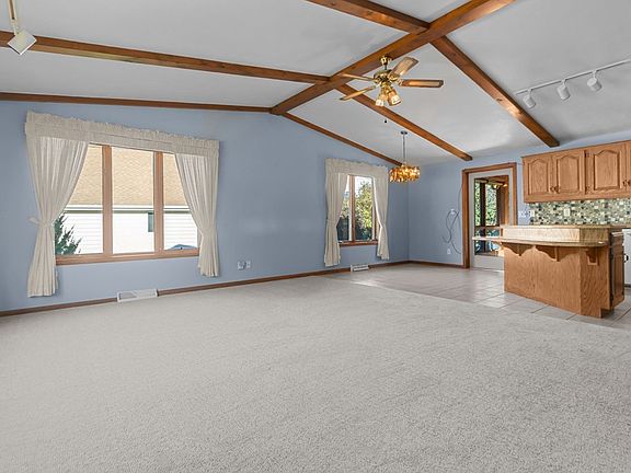 Dock spaceOpen concept designLarge family roomWater accessTile backsplashVaulted ceilingsSpacious deck area