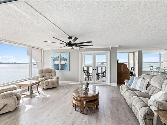This is one of Dunedin's finest opportunities to create your personal paradise on the water. A rare offering, the largest top-floor residence in the desirable Edgewater Arms 55-plus community. This spacious condominium showcases unobstructed panoramic views across St. Joseph Sound, where you can enjoy tranquil, nightly sunsets over Caladesi Island. With no neighboring buildings in sight, you'll experience absolute privacy and a sense of serenity rarely found on the waterfront. Each of the three oversized bedrooms offers a breathtaking view, and the expansive floor plan provides exceptional potential to create a one-of-a-kind dream home that reflects your personal style. The unit includes a washer and dryer, assigned covered parking, and access to a wide range of community amenities such as waterfront clubhouse with gym, pool, fishing piers, bike and kayak storage, and a beautifully updated lobby. Enjoy a vibrant, accessible location near the Dunedin Marina, Fenway Hotel, and downtown Dunedin's charming shops and restaurants. The building experienced flooding last year, however, all assessments have been paid, and the community has been fully restored, stronger and more beautiful than ever. Milestone inspection is completed, and the building is fully funded.