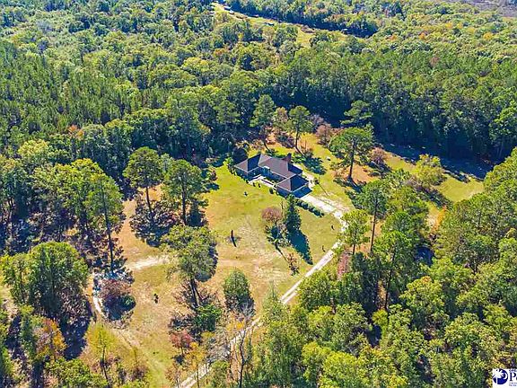 The property was previously under contract and is now available again, without any fault of the seller. Welcome to Bluebird Manor, a stunning 48.74-acre estate with a private pond and basement nestled in the picturesque country of Darlington, SC. Two private gated entrances lead to the peaceful driveway, unveiling the exquisite four-sided brick primary residence offering three bedrooms, an office, and four full bathrooms. The stunning architectural detail of the home exudes unparalleled grandeur and opulence. Commencing with a 9-foot double entrance, the doors open to the foyer with hexagon jade tile floors. The appointed living room and den provide gracious views of the outdoors. The sun-filled formal living room features dentil crown molding, a custom walnut fireplace mantel, and an artistic peacock feather glass chandelier. The craftsmanship of the hand-hewn beams, brick accent wall, parquet wood floors, and knotty pine paneling provides a rustic ambiance in the den. The immense kitchen features custom solid wood cabinetry and granite countertops. The kitchen has a microwave, dishwasher, stove, range hood, trash compactor, garbage disposal, and sub-zero refrigerator that will convey. French doors lead to the owner's bedroom, which serves as a private sanctuary, complete with an office (optional fourth bedroom), his and her bathrooms with a relaxing soaker tub, separate shower, and bidet. The bathrooms feature stained glass on the windows, displaying elegant patterns and an array of colors. The laundry room and mudroom with hexagon jade tile floor are conventionally located near the two-car garage and basement. The 1,981 sq ft basement with a brick fireplace offers endless possibilities to transform it into a unique space. Take the elevator to access the vast attic for additional storage space. The 48' x 24' detached garage has electricity, making it ideal as a workshop, and includes an office and a bathroom. There are five outdoor light poles, gutters around the house, and the roof was installed in 2020. New water lines were installed in 2021 to connect with the Darlington County Water system. A separate water meter, power line, and septic tank were installed for an additional homesite on the property. The termite bond with Orkin will transfer to the new homeowner. Pears, figs, peaches, apples, and plum trees are planted to provide fruits for years to come. The pond with a fountain creates a tranquil atmosphere. For equestrian & outdoor enthusiasts, Bluebird Manor is a paradise that offers the best of both worlds – a serene rural setting with deer and turkey, just minutes away from modern conveniences. 634 Georgetown Road is more than just a home; it's a daily retreat.