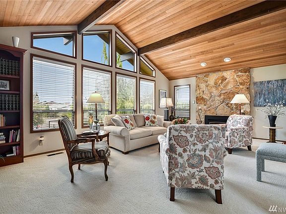 Beautifully appointed Edmonds Bowl home at the end of a quiet dead end street. Recently remodeled kitchen and bathrooms with new carpet and hardwood flooring through out. Vaulted ceilings in entry, living room and dining room. Huge wrap around deck off of dining room and kitchen and lower deck off of master bedroom with hot tub. Enjoy the babbling sound of Shell Creek with occasional spawning salmon swimming upstream. Two short blocks away from the beach and an easy walk to down town Edmonds