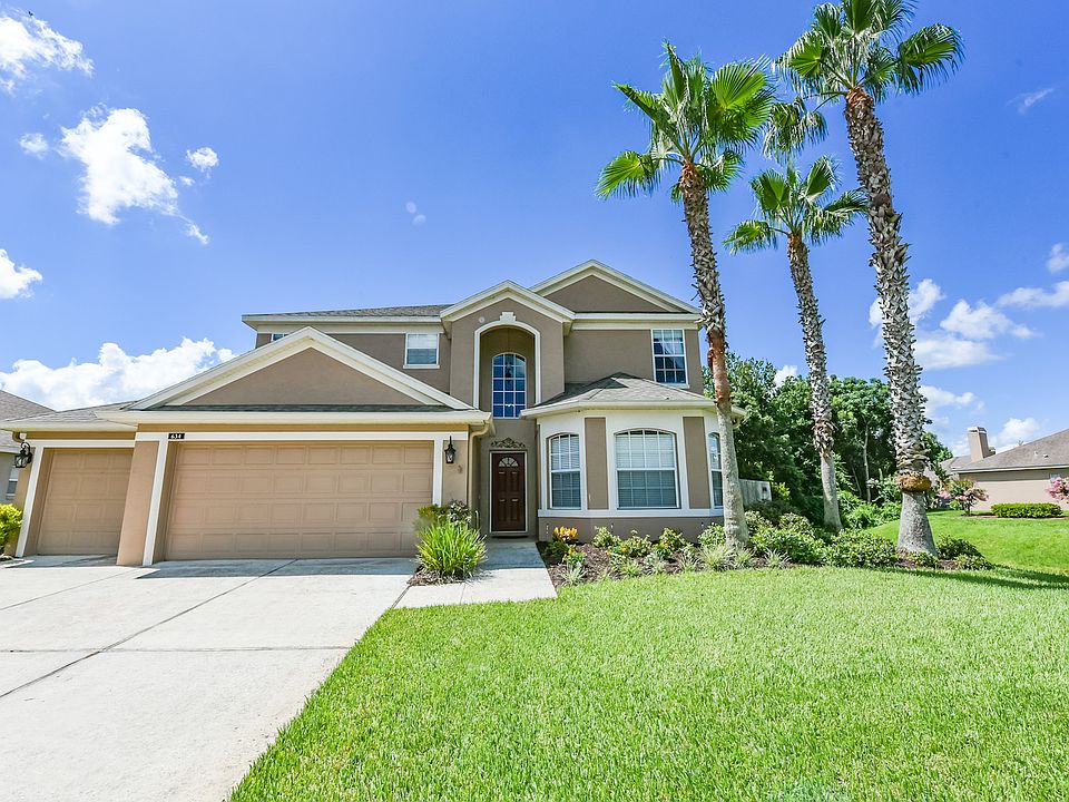 Amazing and pristine home located in the highly desirable and gated Brookestone community. This 5 bedroom, 3 bath home w/ 3 car garage has been lovingly cared for and is completely move in ready. Upon entering you'll love the grand, two story high ceilings in the foyer. Recently installed hand- scraped hard wood floors and high end updated light fixtures compliment the elegance this home offers. The kitchen is open and has 42" raised panel cabinetry with crown molding, beveled edge speckled Corian countertops, beautiful tile backsplash, under cabinet lighting, center prep island, Brand NEW Amana stove, large bar area and spacious kitchen nook with large windows overlooking the partial conservation view. Family room is quite grand and offers plenty of space and nice flow for entertaining. There is one bedroom and full bathroom downstairs, perfect for guests or a mother-in-law suite. Upstairs you will find the master suite and three additional bedrooms and full bath. Cat walk/Loft area is a perfect homework or office station and all secondary bedrooms are generously sized. The master suite has a large walk in closet, dual vanities, jetted tub and large walk in shower. Outside the property is fully fenced and offers, partial conservation and a large side easement providing close to 70' of privacy between you and your neighbors. This home is truly a gem and conveniently located within minutes to the 429, 408, turnpike, Winter Garden Village and downtown Windermere. Plenty of shopping and restaurants abound!