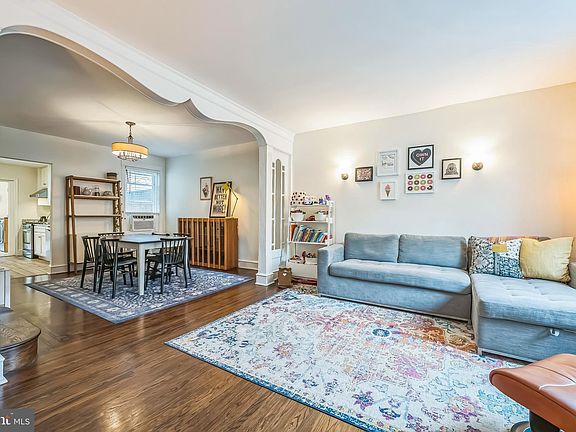 Meticulously maintained and thoughtfully upgraded, this 3-bedroom, 2-bathroom home is located right in the heart of South Philly. Step through the charming vestibule into an open floor plan with beautifully refinished hardwood floors and unique historic details throughout. A decorative arch separates the living and dining rooms, while a large bay window fills the space with natural light. The kitchen features modern cabinets, appliances, and countertops. Past the kitchen, you will find a large first floor laundry area and a full bathroom. Out back, enjoy a private deck with a new fence—ideal for BBQs and entertaining. Upstairs, you'll find three generously sized bedrooms, a full bath, a large linen closet in the hallway, and two large closets in the primary bedroom. The basement is freshly coated and offers great storage. Electrical has been updated throughout, along with basement parging and more. Schedule your showing today!