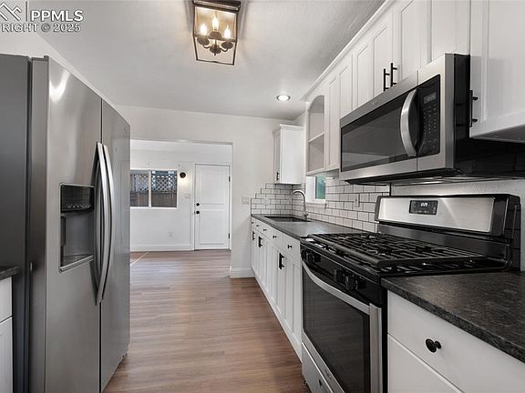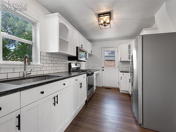 ***New and beautiful, designer selected exterior paint*** Charming and move-in ready, this fully updated 1925 ranch home sits in one of Colorado Springs’ most desirable areas—just two blocks from Colorado College and nestled near the historic Old North End. The property boasts a premium 6000 sq ft lot with rare R2 zoning, allowing for a second home or rental unit, with both side and rear alley access making future development straightforward and accessible. Step inside the classic white picket fence and onto the welcoming front porch, framed by garden boxes ready for your favorite blooms. Inside, you'll find two spacious bedrooms with walk-in closets and a beautifully remodeled bathroom featuring vintage-modern flair. The cozy living room includes a charming stove for warmth and ambiance, while the kitchen impresses with sleek white Shaker cabinets, subway tile backsplash, and a gas range. A large laundry area offers extra space for a dining set, and dual backyard doors enhance indoor-outdoor living. One opens to a private deck off the kitchen—ideal for al fresco dining—while the other leads to a serene patio and fenced yard. With modern updates, historic charm, and future expansion potential, this is an exceptional opportunity in a truly unbeatable location. 3 virtually staged photos. See Agent/Showing Remarks. Ask about building plans for the future second dwelling!