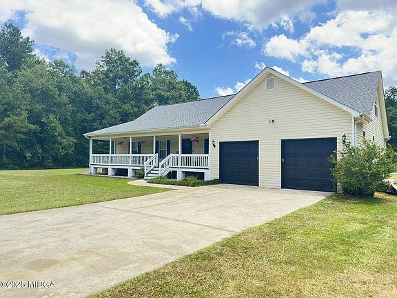 Welcome to your dream home nestled in the heart of Kathleen with no HOA and zoned for Matt Arthur Elementary, Bonaire Middle, and Veterans High School. This expansive 5-bedroom, 3-bath estate offers 3,188 square feet of living space on a beautifully landscaped 2.46-acre lot. Step outside to your private backyard retreat featuring a custom in-ground pool, hot tub, fire pit, and a gorgeous custom deck. Relax under the gazebo or entertain guests in style. The large front porch offers the perfect place to enjoy peaceful mornings and quiet evenings. Inside, you'll find a spacious living room, dedicated office, and a huge game room-perfect for family fun or entertaining. Enjoy a custom tile shower, oversized closets, and upgraded finishes throughout. The property includes a large 2-car attached garage, plus a detached 2-bay garage with two carports-ideal for extra vehicles, hobbies, or a workshop. This stunning home offers the perfect blend of comfort, space, and outdoor luxury-all in a prime school zone and with no HOA restrictions.