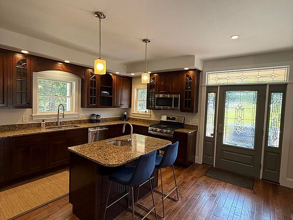 Incredible Opportunity in Blue Hill, this beautifully and well maintained year round home sits on 9.5 ac of pristine wooded land just moments away from Blue Hill Mountain hiking and biking trails. You are just a few minutes away from all amenities of downtown. The home is built on a rare bubbling stream that runs the length of the property. The current owners of the home have made significant upgrades in the last two years. This home features newly renovated master bath, with a custom shower with a bench seat heated tile floor. Also the owners finished the basement with a spectacular laundry room. 3 heat pumps were also added along with a whole house generator. The three car garage has separate electrical service and is also connected to the well & Septic ready for you to make the space your own maybe a home office or in law suite just for some ideas. This home is move in ready just bring your clothes and furniture. Pets no problem the current owners did just put a nice fenced in yard as well. A energy efficient on demand propane water heater no one will be running out of hot water. Home is a must see
