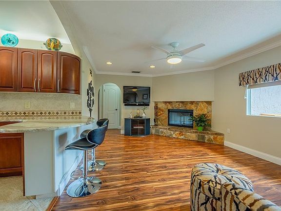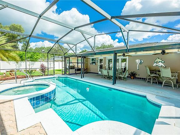 Beautiful 3 bedroom 2 bath home with heated SALT water pool and Jacuzzi located in the desirable Spring Oaks Community. This meticulously maintained home with multiple upgraded features also has an Optional HOA. As you enter through the garden area into the foyer you will notice the hand scraped laminate flooring, and upgraded laminate throughout the entire home. The split floor plan has the 2 secondary bedrooms off the living room with an updated bathroom. In the master you will find a large bedroom, walk-in closet, and big super shower that is also handicap accessible. The Kitchen boasts porcelain tile on the diagonal, newer STAINLESS STEEL appliances, custom cabinetry, GRANITE counters, and pass through window to the lenai, perfect for serving even the largest crowds. The closed in patio with sun shades is amazing for entertaining, all while overlooking the screened pool and jacuzzi. Other amenities included in this home are DOUBLE PANED WINDOWS and doors, newer VINYL FENCE, newer hot water heater, new garage door opener, and brand new FIREPLACE and flue. Conveniently located to shopping, highways, and the Westmonte community pool and park.