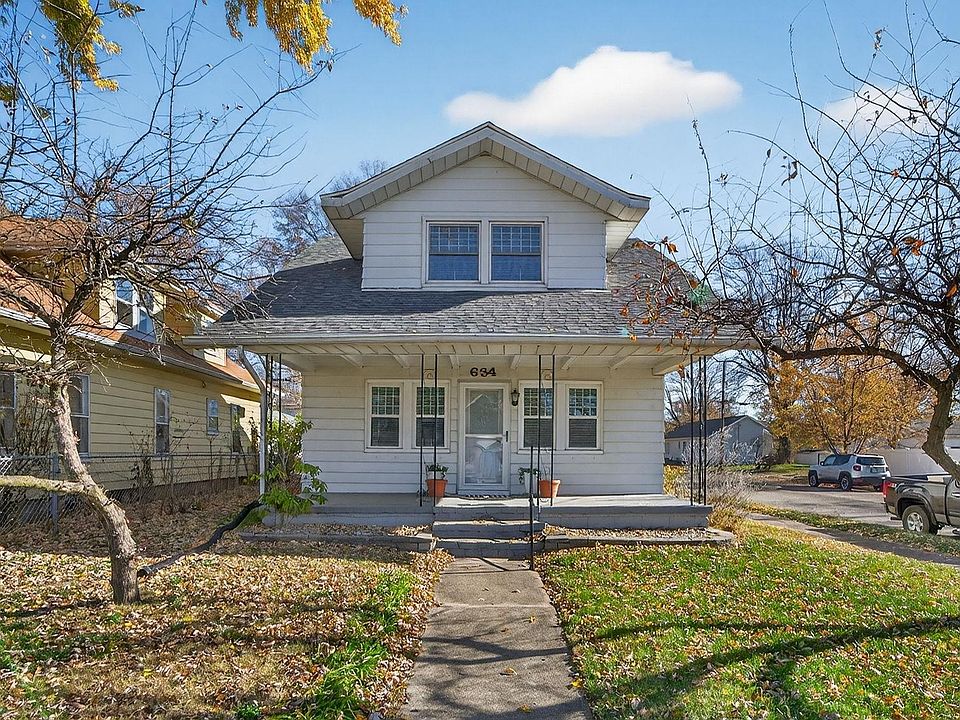 ***Open House Sunday 11/23 from 2-4pm***Charming corner-lot bungalow with spacious living areas and recent updates throughout. The main living room features hardwood floors and leads to a flexible bonus space ideal for an office, den, or potential third bedroom, complete with a fireplace, recently updated tuck-pointed chimney, and updated electric insert. A generous dining room with corner cupboards connects to the main-floor half bath. The kitchen offers functional workspace plus extra storage near the back entry and access to the basement for laundry, mechanicals, and storage. Upstairs are two large bedrooms with walk-in closets, hardwood on the stairs, and hardwood under the carpet ready to be uncovered. Major improvements include a new roof with leaf guards (2024), newer water heater, annually serviced boiler, updated electrical panel (2025), and newer windows. The property also offers backyard space, a storage shed, and ample on-site parking. Direct access to sidewalks, close to parks, the Potawatomi Zoo, restaurants, and shopping.