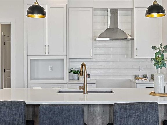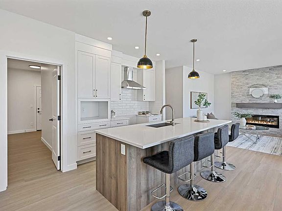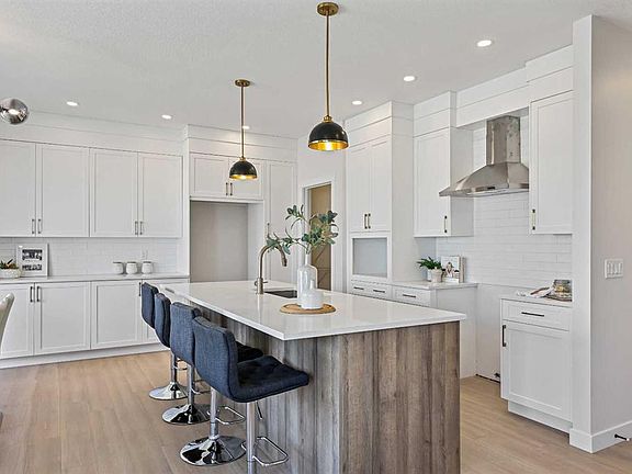 Genesis Builders presents the Ashdale, a thoughtfully designed 3 bedroom 2.5 bathroom home offering more than 2200 square feet along with a main floor office. Stepping inside, you are greeted by the warm ambiance of neutral tones and airy 9' ceilings. The luxury vinyl plank flooring guides you through the open concept main floor living space. The heart of the home is the chef’s kitchen with cabinetry finished in chantilly lace, accented by black and gold hardware, a wood grain island, a glossy white herringbone tile backsplash, and bright quartz countertops paired with a stainless steel appliance package. The open concept living area offers a generous dining room that flows into the living room and provides access to the north backyard where you will enjoy sunny evenings and beautiful sunsets. A stone faced feature fireplace anchors the living room and adds warmth and style. Complimenting the main floor is a private office, a powder room, and a convenient walk through pantry from the mudroom that connects to the double attached garage. Upstairs, a central bonus room with a tray ceiling greets you and separates the primary bedroom from the second and third bedrooms. The primary bedroom is a spacious retreat with an ensuite bathroom that includes double sinks, an oversized tiled shower, and a large walk in closet. The additional bedrooms are generous in size and function perfectly for kids or guests. A beautifully finished full bathroom and a laundry room complete this floor. The basement is a blank canvas with upgraded 9' ceilings and awaits your design ideas. Situated in the desirable bayview community, this family friendly neighborhood offers endless ways to get outside. You are steps from Nose Creek Elementary School, the pathways that wind along the scenic canals, a new playground, and so much more. *Area size was calculated by applying the RMS to the blueprints provided by the builder. Photos are representative colors and finishes may vary.