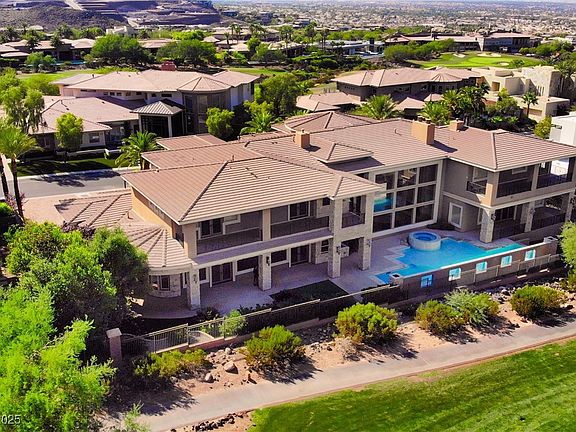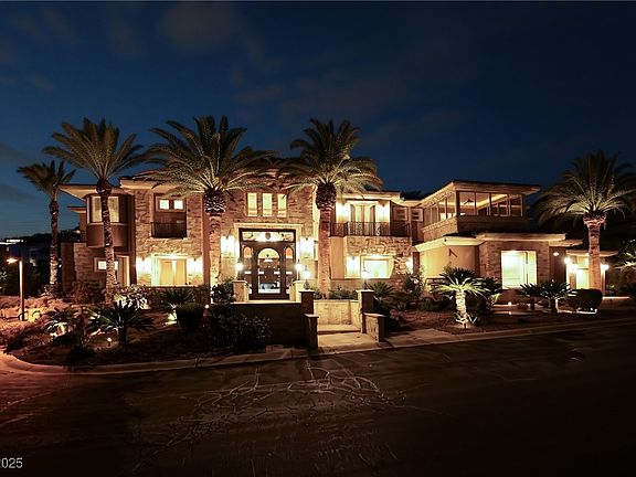 Breathtaking architecture, and stunning strip, mountain and golf course views, abound in this 12,872 sq ft masterpiece. The European foyer with its dual curved staircases is accented with timeless iron railings, black granite & Brazilian cherry wood flooring and a massive hand-cut crystal chandelier. Entertain large parties in the two story grand salon. Chef's kitchen includes Wolf Appliances Sub Zero refrigerator and freezer. The heated pool features a swim-up bar, 5 water shears and luminaire jet fountains into the spa and multiple fully dimmable LED lighting systems. Ride the custom glass elevator while viewing the fairway on Dragon Ridge golf course!!