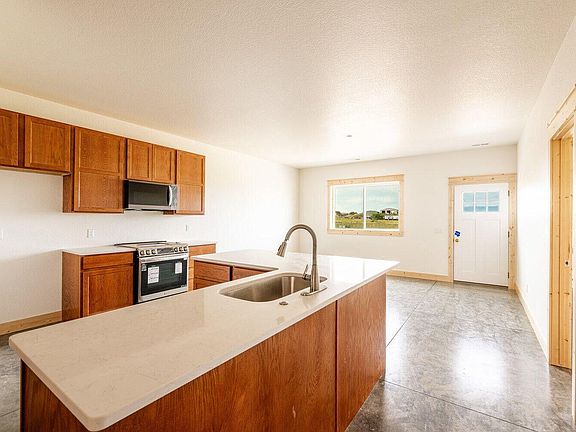 Discover the perfect blend of modern elements and cozy charm in this new construction 3 bedroom, 2 bath twin home. Step inside to concrete flooring, pine trim/doors and an open-concept living space designed for effortless flow. The primary bedroom has a large walk in closet and en suite bathroom. Outside, find your private patio with panoramic views of the Bighorn Mountain range.