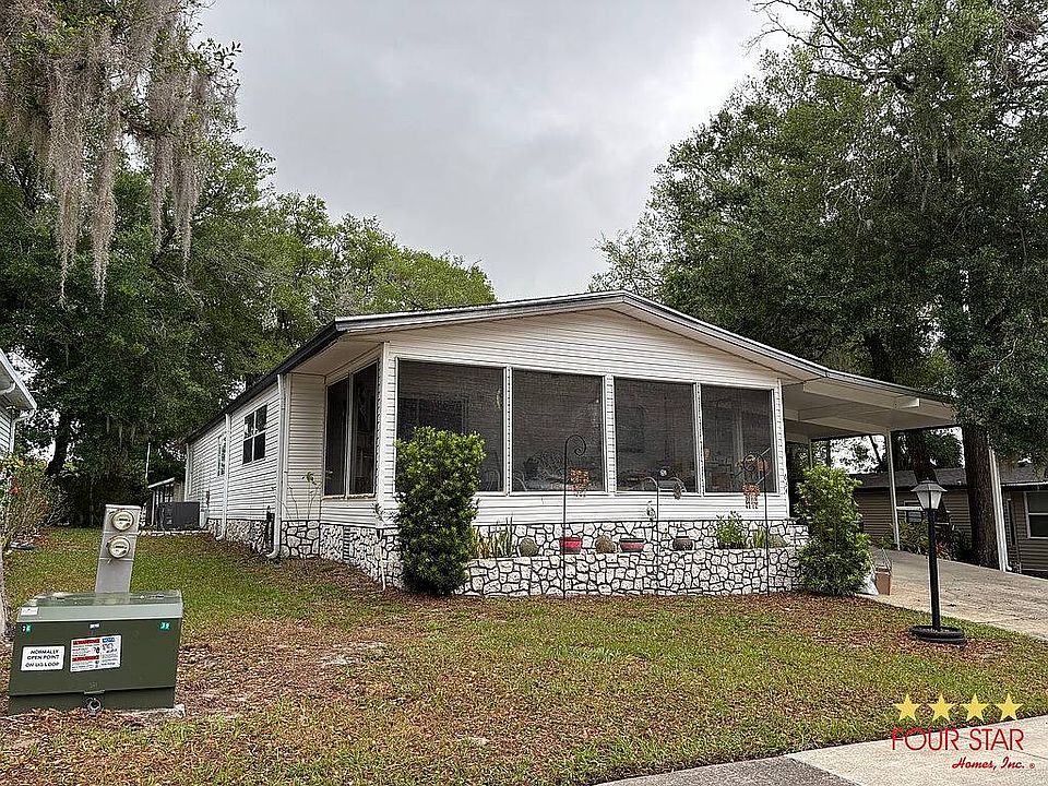 This community offers many social planned activities. Meet your neighbors. Including a seasonal heated pool and year round hot tub for a healthy active life style. Open floor plan with plenty of cabinets and counter space plus a pantry. Built in lighted and mirrored China cabinet. Many rooms have vaulted ceilings. Light colored wood laminate flooring. Lots of square footage in this large 2 bedroom 2 bath with walk in closets. Main full bath plus second Master bath has double sinks with privacy area for shower. Inside laundry room with included washer and dryer, storage cabinets, closet and a built in lighted desk area. Large screened front room that spans the entire width for watching the Western sunsets. Beautiful shade trees and blooming azaleas in this large backyard will make you feel like you are living in a park. This home is 28x58 with easy size step up entry attached to a small outdoor deck. Oversized driveway. Large storage shed with electricity, lights and ceiling fan for all of your storage needs and hobbies. This home is high and dry and wont be on the market long. Make arrangements to tour it and start living your best life now!