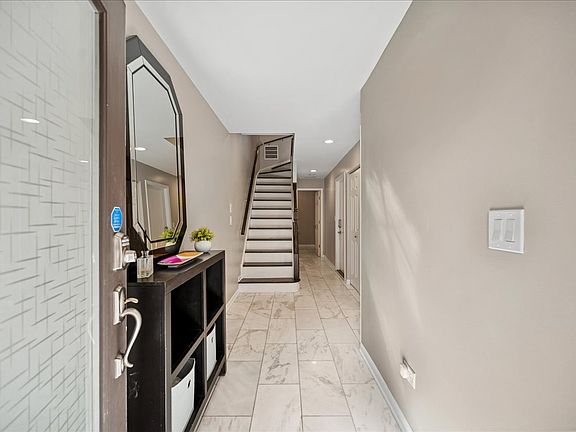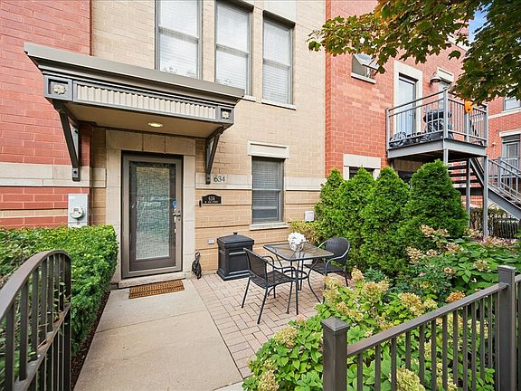 Welcome home to River Village! This stunning 3-bedroom, 3-bath townhome offers three private outdoor spaces and exclusive access to a serene, one-acre park. A gated front patio invites you into a spacious foyer with a coat closet and direct access to the attached 1-car garage - perfect for every Chicago season. This level also includes a flexible third bedroom (ideal for an office, den, or guest suite), a full bath with a stand-up shower, and convenient laundry with extra storage. Upstairs, enjoy a bright, open-concept living area with large windows that flood the space with natural light. The kitchen features stainless steel appliances, white cabinetry, a large pantry, movable island, breakfast bar seating, and stylish pendant lighting. Step out onto the private deck - perfect for grilling or relaxing. The dining area flows seamlessly into a spacious living room with treetop views, custom built-ins, and a cozy gas fireplace. The primary suite offers a peaceful retreat with a double vanity and soaking tub. A second bedroom and full bath with a stand-up shower complete this level. Head up to the fourth-floor rooftop deck, featuring a built-in dry bar with beverage fridge - the ideal spot to entertain or unwind while enjoying city views. Located in the Ogden School District and Lincoln Park High School, this home also provides gated Riverwalk access and is just steps from Target, Mariano's, River North restaurants and shops, New City, and more - with easy expressway access.