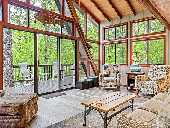 Say hello to Fall at Wilderness Escape, a charming Innsbrook chalet tucked among the trees with scenic views and direct shoreline access to the private & lovely Lake Wunderbar, just down a tree-lined path. This furnished chalet is a wonderful surprise, creatively stylized to be your own cabin-themed nature getaway with room for everyone & great for kids and adults alike. Situated on a private 2.4 acre lot with circle drive, this inviting retreat features a large front firepit area and its own playground on the property. The primary bedroom has its own en suite full bath plus enjoy a second full bath on the main level; there's plenty of additional space in the sleeping loft, too, with lots of room for the included 2 beds. For more lake fun, you'll be just a short walk or golf cart ride to the sandy beach at nearby Lake St. Gallen. Whether you're casting a line, roasting marshmallows, or heading to Innsbrook’s 18-hole golf course, this chalet offers a blend of adventure and relaxation with wonderful design features and furnishings. Most contents included to make this a true getaway gem! When you aren't enjoying your new retreat, it can be used as a rental property if desired. Let the new memory making begin!