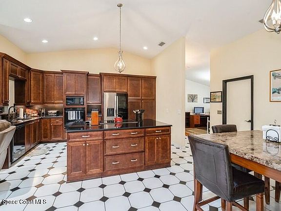Screened poolOffice spaceSide entry garageSleek black granite countersAdditional parkingPalms for seclusionOversized lot