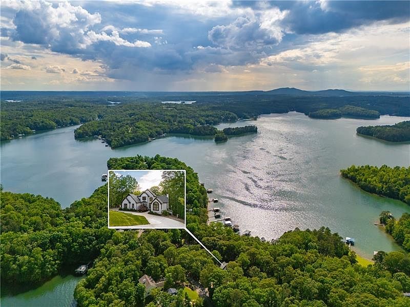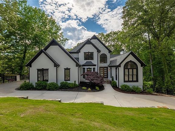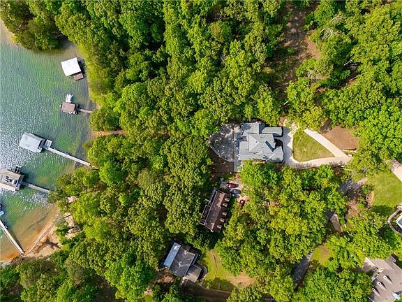 Introducing a rare opportunity to own a lakefront, gated home with no HOA - beautiful lake views, fully renovated, and a level, easy walk to your private dock! This property is conveniently located on deep water at the south end of Lake Lanier in Forsyth County, just a short 10-minute drive from GA-400 and conveniently close to shopping, restaurants and amenities. The level pathway to the lake leads to a single double-deck party boat slip with upgraded decks and floats perfect for countless sunsets over the Six Mile Creek horizon. NO HOA. New roof & HVACs. Recently renovated, this home showcases a stunning white kitchen with upgraded quartz countertops, dual islands with a wine rack, and custom vanities featuring quartz counters and frameless glass showers throughout. The oversized master bedroom includes a modern fireplace, a stand-alone tub, an oversized frameless shower, and a custom walk-in closet. The Family Room has been transformed with a floor-to-ceiling marble fireplace as its focal point, enhanced by upgraded designer lighting fixtures and numerous other brand-new upgrades. This is more than just a lake home; it offers a minimum of 6 bedrooms and 5 bathrooms, along with extras like an office, coat room, and a fully finished terrace level. This area provides an additional family room, playroom, space for a second kitchen, and 2 bonus rooms adaptable for use as bedrooms, a gym, workspaces, or storage. Enjoy breathtaking lake views from nearly every room, spanning from the top floor down to the terrace level. Outdoor living is made exceptional with a new iron and cable railing system. The upper deck descends to a brand-new paver patio on the terrace level, accompanied by a paver walkway leading to the dock path. A brand-new fence with brick columns encloses the entire home, while the backyard features a new firepit and gathering area, plus ample space for a future pool. All furniture and decor can be included with a strong offer, making this a turnkey lakefront dream home.