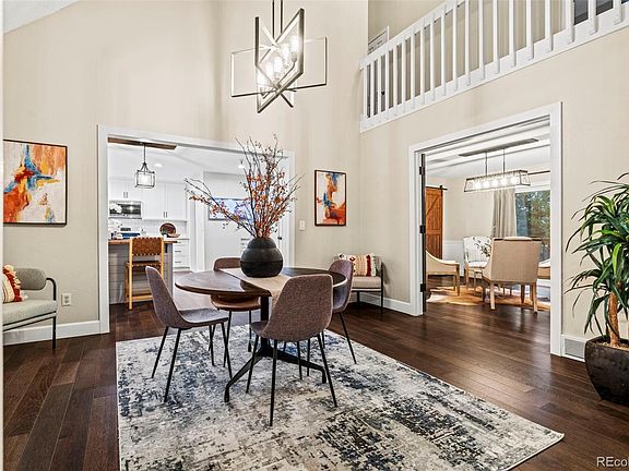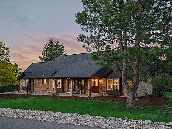 Prepare to swoon over this modern, farmhouse chic masterpiece nestled in the incredibly peaceful and highly sought-after Pinery subdivision in Parker, CO! Straight from a page out of Magnolia Farms' playbook and backing to a greenbelt, this stunning 4 bedroom, 3 bathroom, 4,200+ sq ft. home with a walk-out basement is perched on a sprawling half acre corner lot with jaw-dropping mountain views and is just a short stroll to The Pinery Golf Course and Bingham Lake. Rustic elegance meets contemporary comfort with the spacious and airy layout that is perfect for modern living and features high ceilings, stylish finishes, and plenty of natural light.  Cozy up in the living room to the crackling sounds of your wood-burning fireplace or soak in the bubbling hot tub after enjoying a night of grilling and al-fresco dining on the massive back deck.  Entertaining is effortless in the spacious dining area that flows seamlessly into a beautifully updated kitchen complete with white cabinets, subway tile backsplash, stainless steel appliances and cozy breakfast nook.  After a long day, unwind in your spacious main-level Primary Suite with a 5 piece-en-suite updated bathroom and indulge in the freestanding soaking tub – the ultimate relaxation retreat. A spacious mudroom/laundry room combo, office with a beautiful barn door and half bath complete the main level.  Upstairs, discover three additional bedrooms-two of which connect with a gorgeous Jack and Jill bathroom and an additional storage/bonus room as well while the walkout basement offers a movie/game room area, space for a home gym, and extra room for a workshop and massive storage area.  This home offers incredible value and is sure to impress the most discerning of buyers so don't wait long and get your showing on!