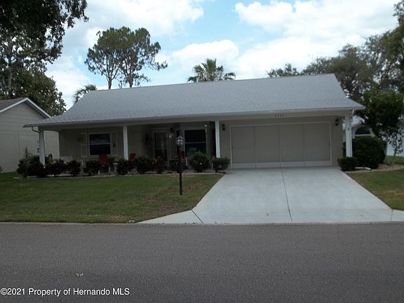 Gorgeous home located in Timber Pines has been completely upgraded. Newer tilt in windows, wood flooring, both baths have walk in showers, water filtration system for kitchen sink and refrigerator ice maker. All light switches and receptacles have been upgraded. Newer stainless steel appliances in kitchen. Nice kitchen cabinets with additional storage space. Heavy duty garage door plus some hurricane shutters. Water heater and heat exchanger new in '21. Roof replaced in 2021. Enjoy seating on the lovely front porch or on the rear patio. This home has so much to offer and is move in ready. Don't wait to see this home.