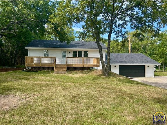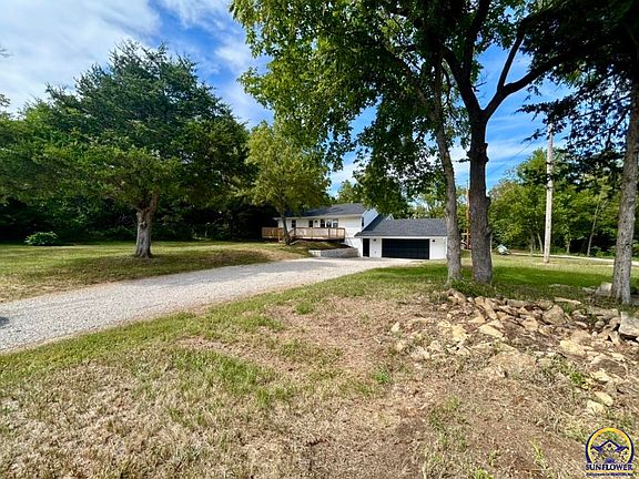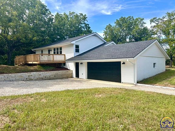 Completely remodeled from top to bottom, this 3 bedroom, 2.5 bath home on 5+ acres blends modern updates with country living in Shawnee Heights Schools. The open kitchen is a showstopper with a large island, granite countertops, and brand-new appliances. Luxury vinyl plank flooring runs throughout for a cohesive look, with a main-level primary suite and ensuite bath. The finished lower level adds two conforming bedrooms with egress windows, a second living space, designated laundry room and full bath. Updates include new roof, gutters, front porch, interior paint, lighting, and more. A 30x24 detached workshop plus attached two-car garage offer plenty of parking and storage. Move-in ready with every detail updated — the perfect mix of modern comfort and peaceful acreage living.