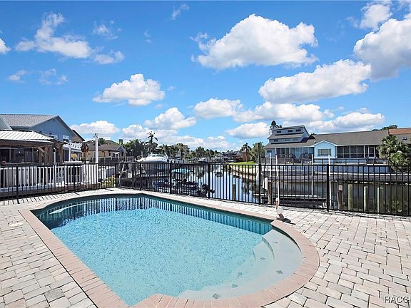 This home is not just a residence; it's a lifestyle, offering the perfect blend of comfort, functionality and breathtaking views. Potential for an in-law suite on the ground floor with two bedrooms, a large great room, kitchenette, bathroom and a room for your passion; exercise, crafts, etc. The ground floor also provides easy access to the pavered pool deck, sparkling pool, seawall and private dock, equipped with boat lift. The second floor is equally spacious including a primary bedroom with en-suite, and two spacious guest rooms. Connected to the family room is a bright and airy sunroom, featuring large windows that offer panoramic views of the water. The kitchen is roomy with plenty of counter space and room for a table. There is a separate dining area for more formal meals, with sliding door access to a small balcony. This property also offers access to Gulf Harbors private beach, and is less then2 miles from Green Key Beach. Roof 2010. AC 2023. Concrete seawall 2013. NO flooding from Hurricane Milton or Helene. Don't miss out on this incredible opportunity to live on the water.