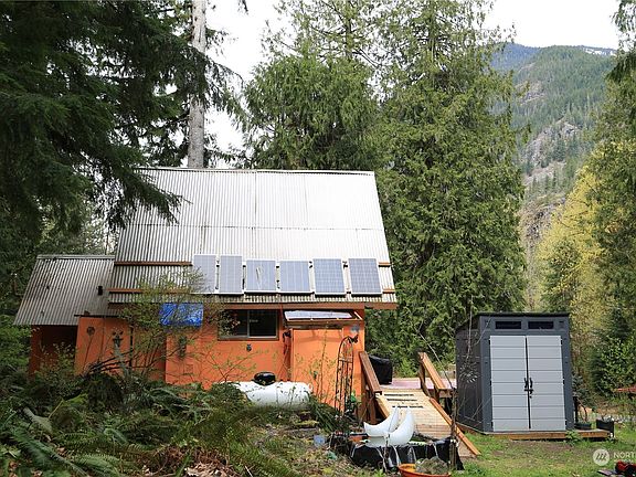 Escape to the tranquil wilderness and embrace off-grid living at Cascade River Park. This cozy cabin is nestled on a spacious, sun-drenched corner lot. The lower section of the lot boasts a flat terrain, perfect for RV parking. The thoughtful owners have planted apple trees, pear trees, marion berries, roses and more. Equipped with updated propane lines inside the home and on the deck, propane powered fridge, new solar panels/system and on demand water heater. This cabin also features a functional bathroom with sink. Home wired for generator use if needed. Immerse yourself in the serenity, seclusion, and natural beauty of Cascade River Park.AirBnB and short term rentals allowed!