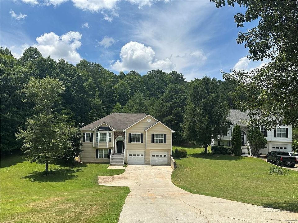 Brand New Roof! Wonderful split level home in Compass Point located in Flowery Branch GA that's looking for new owners to call home. This 4 bed, 3 bath home has NO carpet and vinyl flooring throughout. As soon as you step inside an open family room greets you with stone fireplace and tall ceilings. Private dining room has plenty of natural light and leads to the kitchen. Kitchen includes white cabinets, laminate counters and eat in breakfast area. Laundry room on the main is an added bonus. Primary suite is HUGE with sitting area, walk in closet and double vanity bathroom with separate tub/shower. Two more bedrooms make up the main and share a full bath. Downstairs includes full bedroom and bath with HUGE flex/multi purpose room. Could easily be another living area, office or play room. Double door garage and private front and backyard. Deck overlooks the backyard that overlooks nothing but trees. Swim/tennis community near major highways, shopping, Lake Lanier and more.
