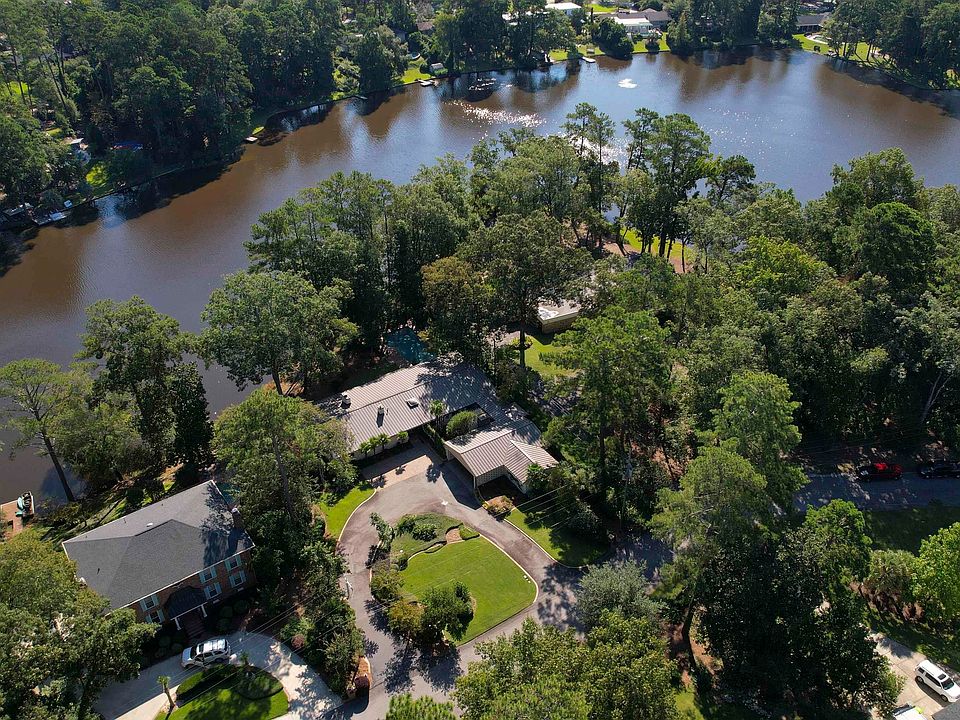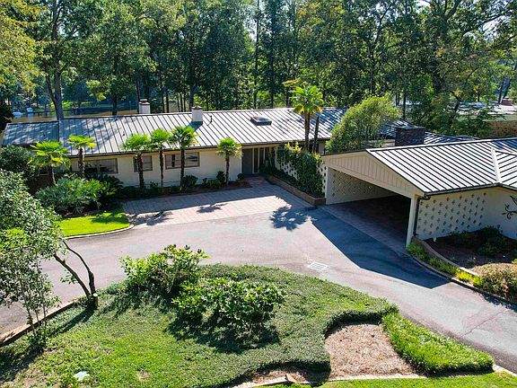 Designed by noted local architect William Keenan for his personal residence, this mid-century modern masterpiece was built in 1957 and has been owned by only three families. Each has added its own improvements, the most recent completed by the meticulous, high-end contractor, Kaufman Construction. Situated on a .82 acre lot with 200' feet on Spring Lake and a beautiful saltwater pool, this home is one-of-a-kind. It has nearly 4,500 square feet of heated and cooled space - all on one level. The master suite and main living areas are on the lake-side of the house and have breathtaking views. Some of the special interior features include cork floors, vaulted ceilings, recessed lighting, concrete kitchen countertops, custom bookcases with backlighting, custom window blinds, and more. The current owners added the luxurious master bath, the heated and cooled workshop, standing-seam metal roof, circular driveway and extensive hardscaping, security system, and much more. The house is currently arranged with 3 bedrooms, and a former bedroom is currently used as an office. The living space includes beautiful living and dining rooms, a stately den with a fireplace and extensive bookcases, and a study. There's also a heated and cooled craft room just off the 2-car carport. The outdoor living space is outstanding and includes a courtyard dining area with a wood-burning fireplace and built-in grill, a covered back porch overlooking Spring Lake, and a lakefront, pool-side dining area. Much more can be said about this very special home, but words are no substitute for a personal visit. Disclaimer: CMLS has not reviewed and, therefore, does not endorse vendors who may appear in listings.