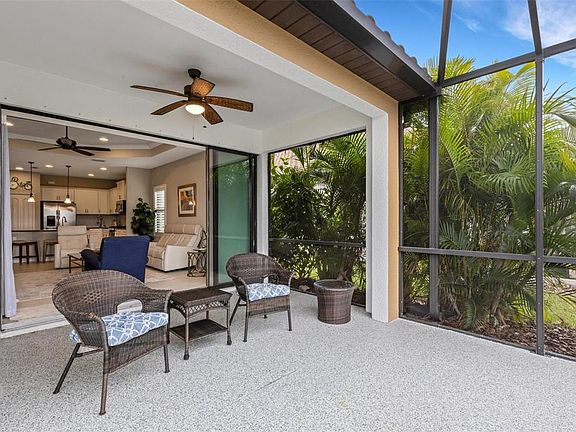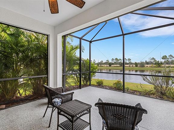 Welcome home to this pristine Villa in the highly sought after gated community of Villa Amalfi. This beautiful furnished villa features an open plan, with 2 Bedrooms and a Den! This villa is a lakefront villa with peaceful lake views. The amazing location in the heart between both Sarasota and Manatee county make this your perfect new home! The contemporary floor plan with neutral tile features a great room with a dining nook, tray ceilings as well as recessed lighting. Enjoy Florida lifestyle at its best by opening the large sliding doors to extend the living space to the extended lanai to enjoy fantastic lake views. The modern kitchen with upgraded white wood cabinetry, granite counters, under cabinet lighting, large island, and a gas range is a chef's dream. The built-in bar adjacent to the kitchen offers additional storage. The master suite features separate walk-in closets with built-in shelving as well as an ensuite bathroom with double vanities. The 2nd bedroom features a ship-lap wall! The den is ready to become the additional space you need: an office, a studio, or an exercise room/game room. All windows have plantation shutters. You will love living in this great neighborhood and meet your neighbors at the community center or the heated pool & spa, and outdoor kitchen. This villa is located in a great location, convenient to Sarasota & Bradenton, shopping, entertainment, Golfing opportunities, restaurants, markets and the beautiful Gulf beaches. NO PETS