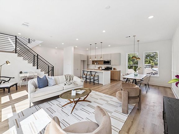 Look no further for your new construction home just minutes from Oak Forest and The Heights! This three bedroom (all en-suite), three and a half bath property has the most elevated finishes. Beautiful wide plank SPC flooring runs throughout the living areas and all bedrooms (no carpet). In the kitchen and baths stunning champagne bronze and brushed nickel fixtures compliment quartz countertops, elegant cabinetry and porcelain floors. On the first level a formal entry leads to a bedroom perfect for guests or a home office. One floor up is an open and bright living area plus dining space, and a kitchen with a waterfall style island. On the third level is the generous primary suite with a dual vanity bath, separate shower plus soaking tub, private WC and walk-in closet. As well on this third floor is a secondary bedroom suite plus stack-able laundry room with a barn style door. This intimate community (will be four units total) is gated with guest parking.