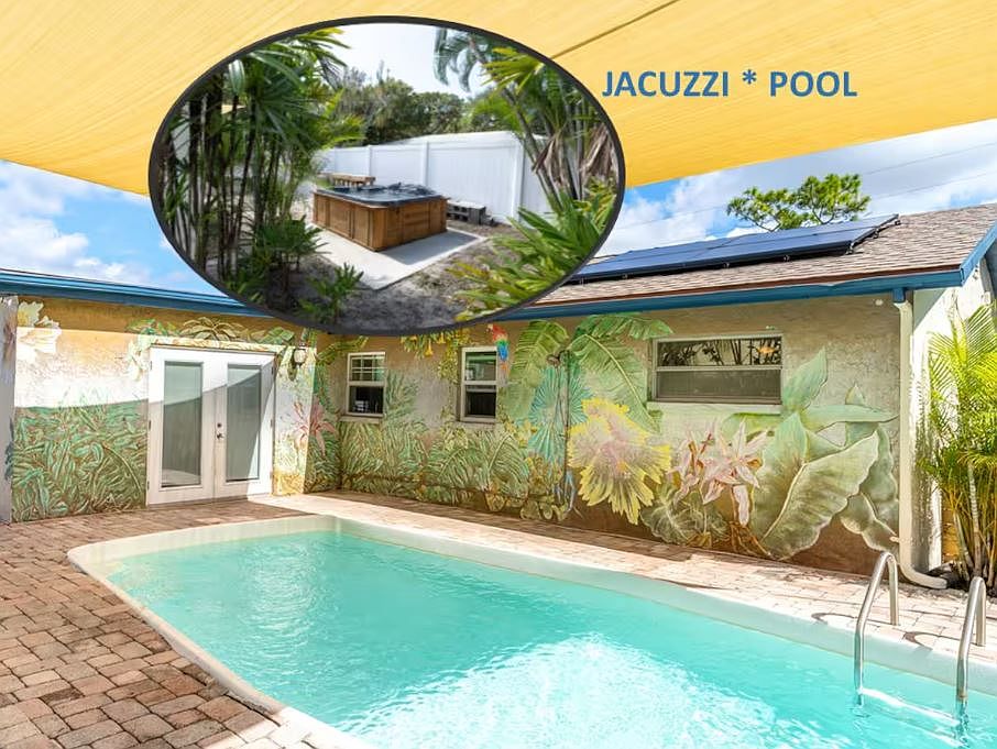 Pool homeNew privacy fencePrivate backyard oasisSparkling poolFully equipped outdoor kitchen