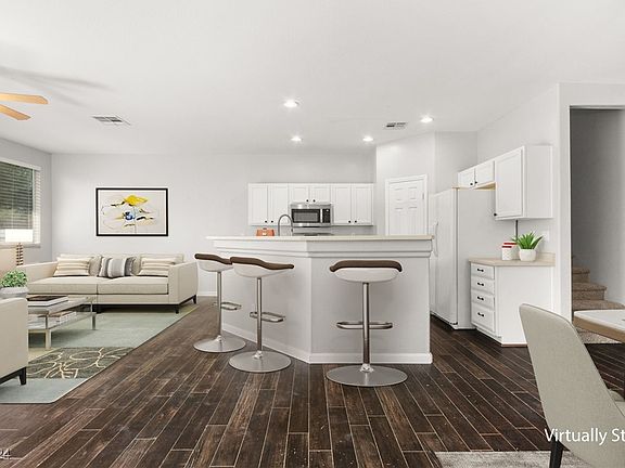 Welcome to this fantastic townhome in a gated Henderson community! Enjoy a spacious kitchen with a breakfast bar that seamlessly connects to the living and dining areas. The kitchen features newer stainless steel appliances, including a stove, dishwasher, and microwave. The downstairs area boasts beautiful laminate wood flooring throughout. The home also includes an attached 2-car garage with direct access and an oversized backyard complete with a patio area, perfect for relaxation. The gated community offers an array of amenities, including pools, a spa, a park, BBQ areas, walking trails, basketball courts, and additional guest parking.