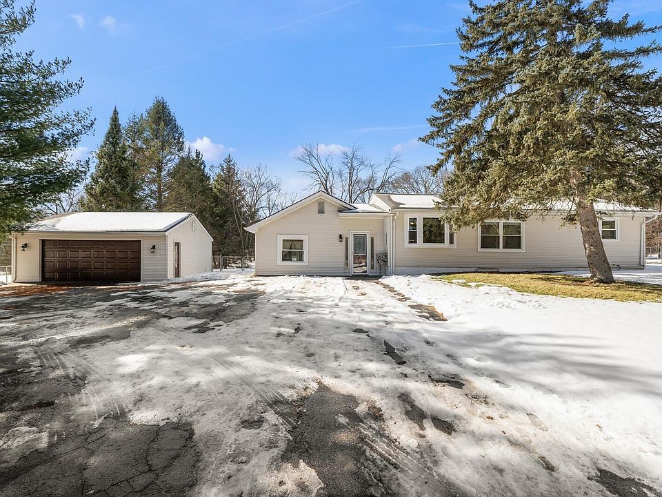 Welcome to this beautifully updated 3-bedroom, 1.5-bathroom ranch, perfectly situated on just over an acre in the heart of Clarkston. Step inside to find newer flooring and windows throughout, filling the home with natural light. The spacious living room offers a cozy retreat, while the remodeled kitchen boasts ample cabinet space, stainless steel appliances, and an adjacent dining area. Enjoy year-round relaxation in the bright sunroom, complete with a wet bar—perfect for entertaining. The convenience of a first-floor laundry room adds to the home's functionality. The basement provides plenty of storage space or awaits your finishing touches. Outside, the updated deck overlooks the expansive backyard, featuring a shed for additional storage. The garage offers space for parking, a workshop, or extra storage.