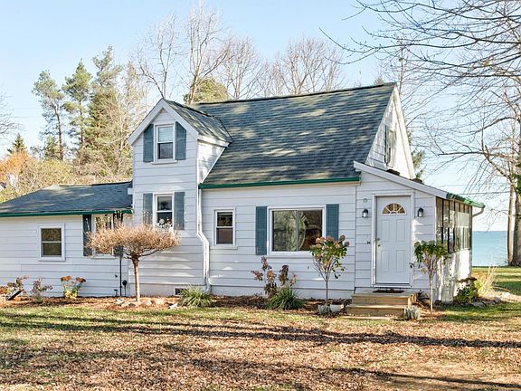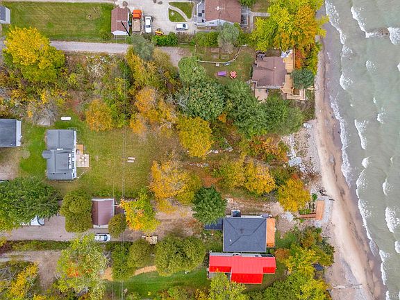 Charming and secluded lakefront hideaway on 50 feet of private sandy beach. Nearly 1200 foot tree lined private driveway, former pear orchard, lots of beautiful wildlife, 4 bedrooms, bath and a half, first floor master, charming south side enclosed sun porch, first floor laundry, lakefront deck for taking in views, furnace and insulation for year round use, 2 car garage, gradual slope to beach which is is wide enough for vehicle access. Rare opportunity to own a 75 foot lot featuring 50 feet of lake frontage. This unique 2.5 acre wooded property provides direct access for all of your favorite lake activities while a wider lot ensures enhanced privacy. One mile south of downtown Lexington, appliances included.