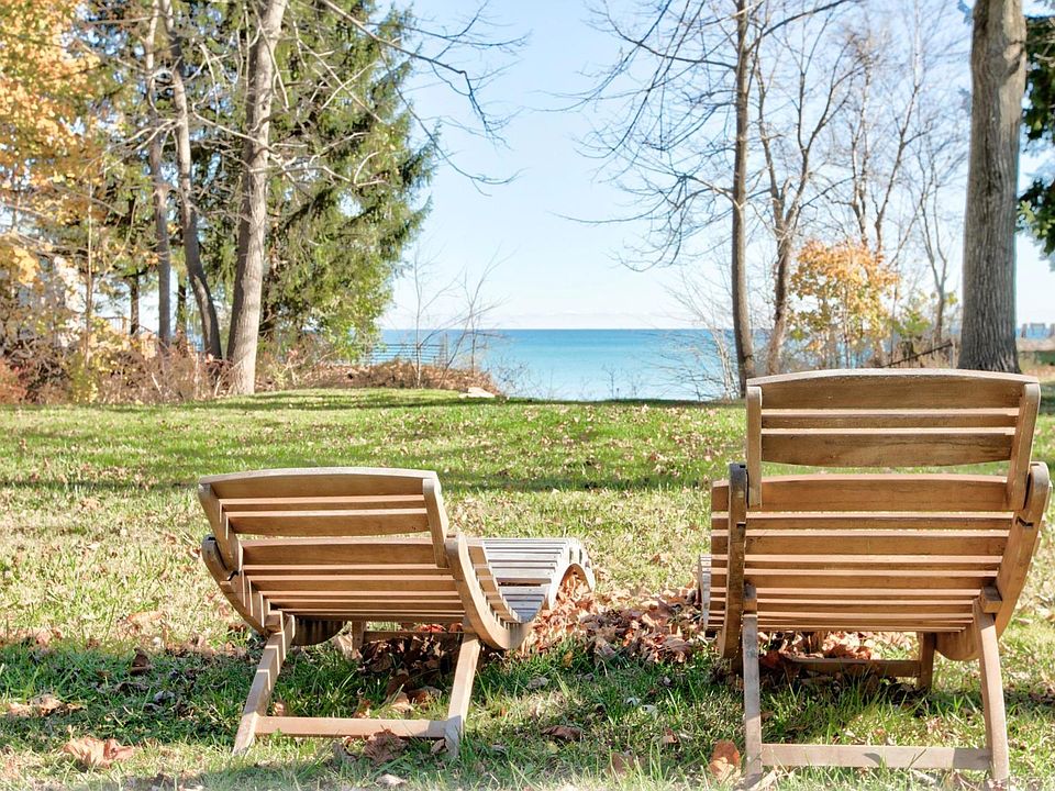 Lakefront deckFirst floor masterPrivate sandy beachTree lined private drivewayBeautiful wildlifeRavine privacyFormer pear orchard