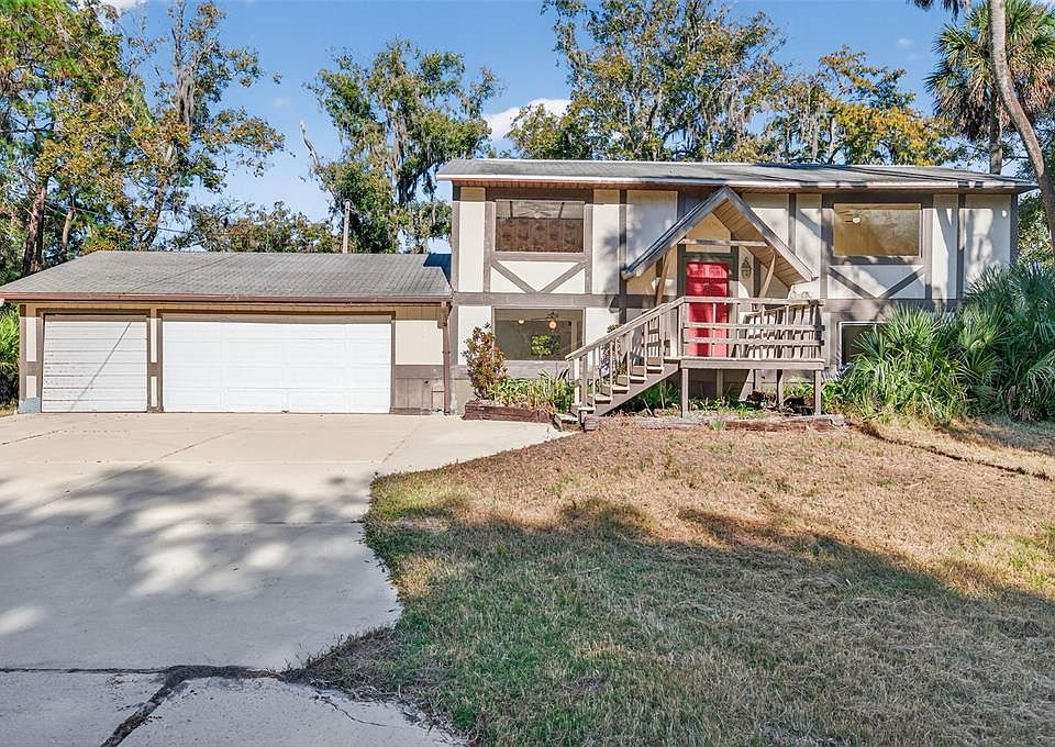 WELCOME TO THE MOST UNIQUE PROPERTY IN PASCO COUNTY at 6345 Lost Trail, Holiday, FL. This AMAZING .76 acre property is a HIDDEN GEM with virtually untouched, PRIME WATERFRONT of about 880 feet of ANCLOTE RIVER. Get away from the hustle & bustle & come EXPLORE the properties offered for sale the first time in decades at LOST TRAIL. The pictures of this RIVER landscape do not do justice as this land is simply indescribable. Some of the countless TROPICAL plants include a pair of MAJESTIC royal palms, bromeliads, bamboo & banana. The 2-story block home features 5 bedrooms, 2 bathrooms & a MASSIVE garage of 36'x24'. The 864 sqft garage can be easily converted to an in-law suite/separate apartment. The laundry hookups are in the garage & there is a back door exit. You'll LOVE the design of the etched front door & the A-frame covered front porch with wood deck landing. The kitchen, living room, dining room, primary bedroom & bathroom are all found on the 1st level. There is a utility closet & a hall closet with a water heater (manufacture date 4/2019) on the first level too. The second level features 4 SPACIOUS bedrooms each with a ceiling fan & a built-in closet. One of these bedrooms has glass sliders to a wooden deck/balcony overlooking the river. The full bathroom consists of a tub/shower combo & a linen closet with an additional coat closet in the loft/landing. The sweet seller used to host outdoor parties & guests would DIVE into the river as some areas of the river are 20-30ft deep! Manatees, otters, plentiful fish, deer, turkey & even a bobcat call this area home. The property features a wooden dock at the water, a BOAT LAUNCH (currently overgrown), rock steps to the river & a GIGANTIC concrete pad for parking of all your vehicles like cars, work trucks, boats, kayaks, jet skis, RV. Roof is 5/2004. The adjacent parcel of 50.5 acres to the north is owned by Copperspring CDD so it is going to stay as undeveloped land adding to the privacy of the LUCKY NEW OWNER. Are you a buyer with a vision for the potential of this GREAT OPPORTUNITY? The seller owns 3 adjacent parcels for a total of 4.5 acres & an UNHEARD of 1,605 feet of Anclote River front which meanders eventually to the Gulf of Mexico!! Combine it with adjacent 1-acre property at 6331 Lost Trail for a 5.5 acre property that can be developed as a private residence or potential commercial development. MAKE THIS YOUR FUTURE HOME!