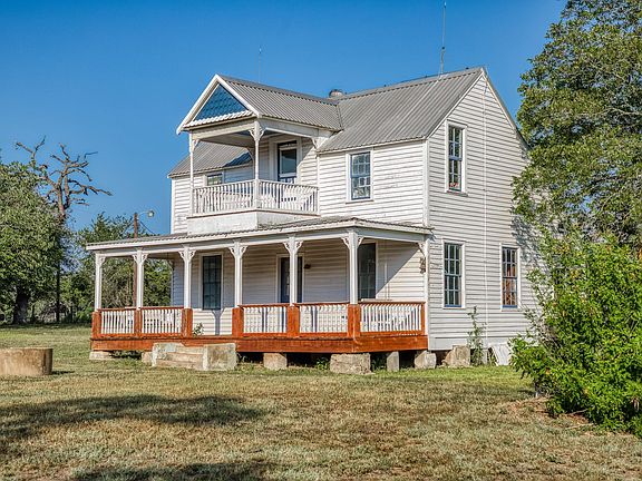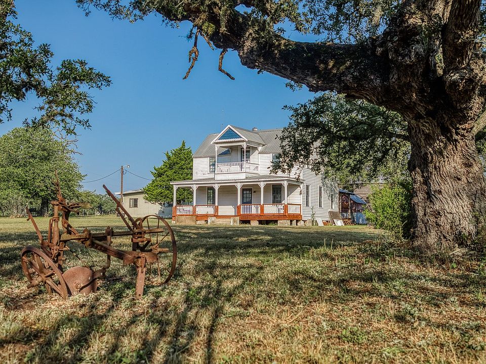 CALLING ALL CHIP & JOANNA TYPES for this Historic, 100+ year old Diamond in the Rough on 5-Acres! This dream restoration project could be your enchanting retreat just 12 miles from charming Round Top square! Main home awaits a buyer w/ heart & passion to breathe new life into it's historic bones. Said to have been built in 1894, the old farmhouse features 3 bedrooms & wraparound upper & lower porches for savoring spectacular TX sunsets. Bonus structures: historic stone smokehouse (transform it to cozy she-shed or wine room for mahjong nights, or home office), antique log barn (rebuild using antique barn wood to be guest house or ultimate entertainment space), large metal garage offers 2 car bays, RV bay, huge workshop & apartment w/ 1 bed/bath. Property is partially fenced. On a quiet paved road under canopy of trees for pure Texas charm upon arrival. More than a property; endless possibilities to create your heartfelt vision for a slice of heaven!