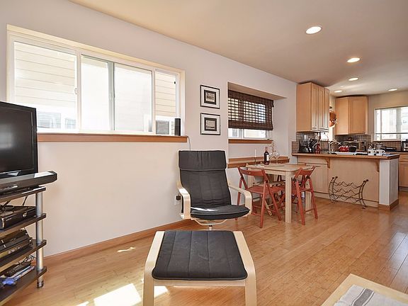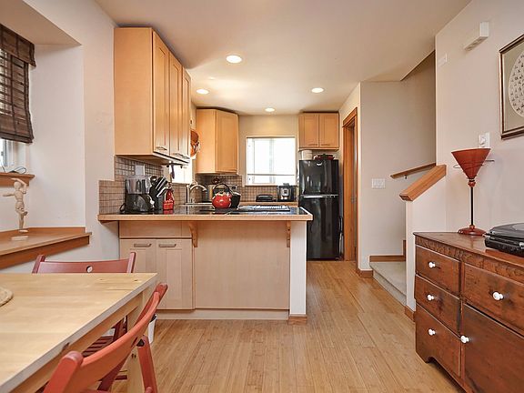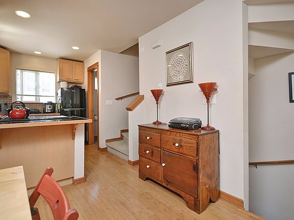 Tucked away, quiet and private end unit townhome with a light and bright floor plan. Bamboo floors on the main where the living room looks out on Evergreens. Upstairs has two bedrooms and a full bath with one bedroom looking out on trees. Lower level features a third bedroom, opening to the private patio and small yard and a ? bath as well as the laundry. Express Bus 21 to Downtown is just 2 blocks away. Welcome home!