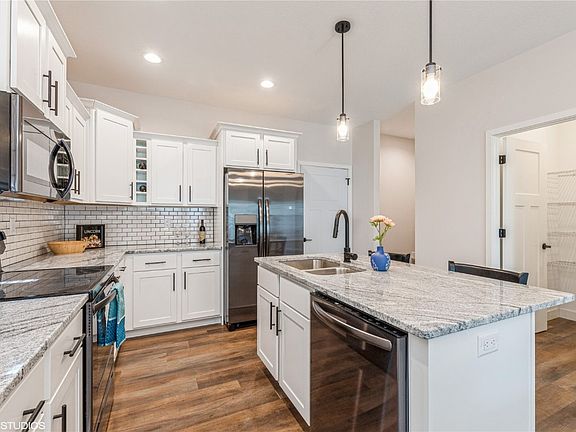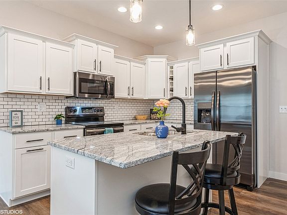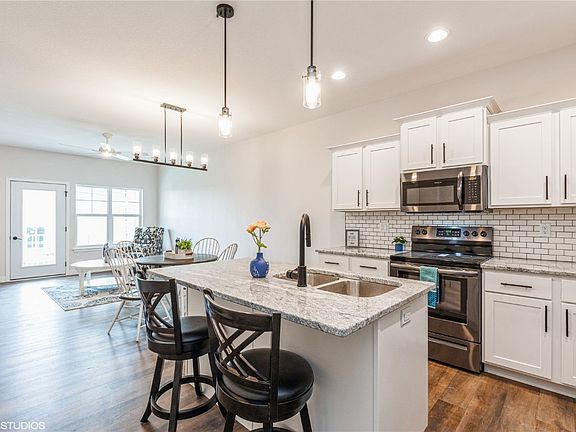 This spacious townhome features an upgraded kitchen with staggered height cabinets, crown molding, subway tile back splash, granite or quartz counters, stainless or slate stainless appliances, pull-out trash drawer, wine cubes, and more. Enjoy the pantry, entry bench, wide-plank floors throughout the first floor, huge master suite with walk-in closet and double-vanity, spacious bedrooms with large closets, 2nd floor laundry and tons of storage. Step onto your covered maintenance-free balcony with composite decking and aluminum railing. You'll love the finished lower level featuring an open rec/flex room, full bath, and storage closet. The attached rear load 2-stall garage allows for the beautiful front appeal this unit has to offer. Situated in front of greenspace plus walking distance to the Rookwood Playground, pond, dog park, and trails. Equipped with several SMART home devices including front door lock, thermostat, garage door opener, and light switches. Add Solar Panels to this home at any time - All of Twenty40's homes are Solar-Ready. *Open Houses start at our model: 2496 Roycroft Alley Marion, IA 52302*