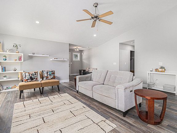 Welcome to this beautifully maintained open-concept ranch, blending comfort and style in every detail. Inside, you'll find a spacious, airy layout with vaulted ceilings and abundant natural light, creating a warm and inviting atmosphere. The bright, stylish kitchen flows effortlessly into the dining and living areas—perfect for both daily living and entertaining. Thoughtfully cared for, this home offers fresh updates and truly move-in-ready convenience. Enjoy the ease of one-level living with generously sized bedrooms and a private primary suite. Outside, the landscaped yard and patio provide an ideal setting for relaxing or gathering with friends.