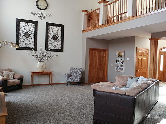 Experience living in luxury at this 2-story home on 10.1 acres just outside of town with Geo-Thermal and a central vac system. Great features include 4 bedrooms, 2.5 bathrooms, magnificent dining room, engaging gathering room, master suite with custom storage for large wardrobes and a fireplace, his-and-her closets, linen closet, elegant great room with fireplace. There is ample cabinet and closet storage in this grand home. A Kensington Custom Home built by Schumacher Builders with 2x6 construction with a high insulation R Value. A wooded and secluded home located on a paved road, 6 miles East of Cambridge. Alarm system. 30'x40' Detached Garage with Heated floor.